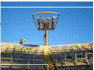Sports Lighting Systems have a complete range of height solutions from 8m to 45m. This equipment is again supplied by Abacus. Abacus have designed and patented a Raise and Lower mast system up to a maximum height of 45m, using a simple counter balance hydraulic unit.